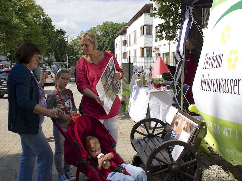 In der Breisgauer Straße 7 befinden sich ein Tierbedarfsverkauf und eine Tierarztpraxis. Sie veranstalteten ein kleines Straßenfest und erlaubten uns, unser Tierheim auf einem Infostand vorzustellen. Wir freuten uns, sogar einige Ehemalige von uns wiederzutreffen. Mariella ist unternehmungslustig wie eh und je, wie uns ihr Frauchen vorführte. Auch Nori konnten wir entdecken.