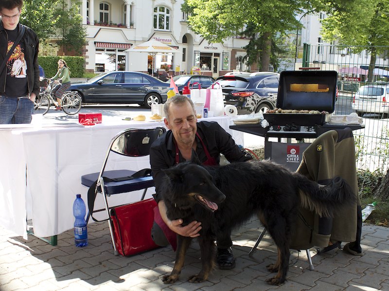 Besonders eifrig war unser kleiner grauer Schnauzer Herr Lehmann. Gemeinsam mit seinem Herrchen leitete er eine Auktion zugunsten unseres Tierheimes. Doolittle's hatte wunderschöne Preise dafür gestiftet sowie einen Kuchenbasar organisiert. So konnte unser Tierheimleiter mit einem dicken Umschlag ins Tierheim zurückkehren.