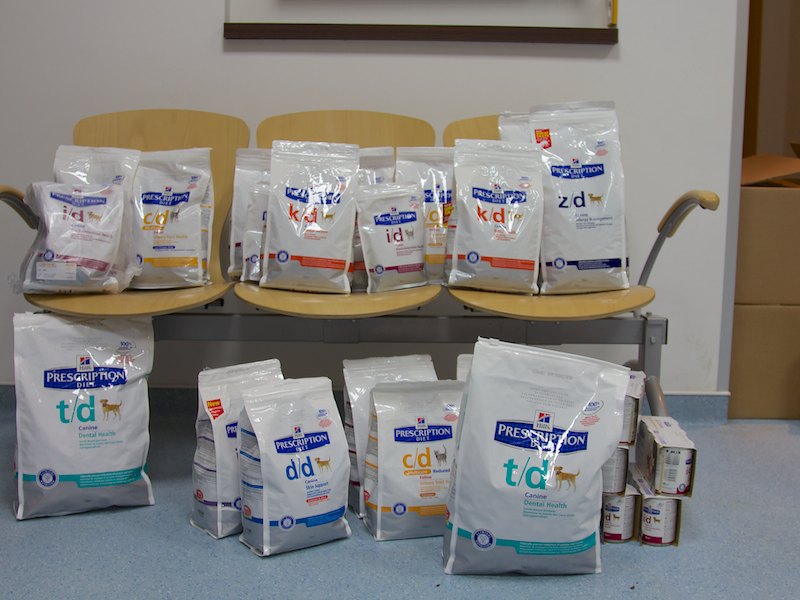Wir hatten das große Glück, in Wildau und Teltow Futter abholen zu dürfen. Darunter befand sich Spezialnahrung für Tiere mit Nierenschäden, Hautproblemen oder auch Erkrankungen des Magen-Darm-Traktes.