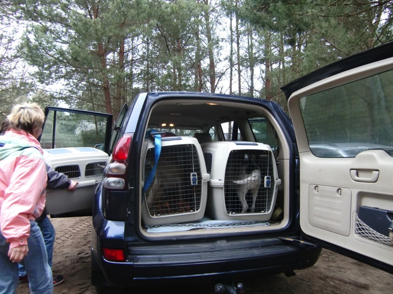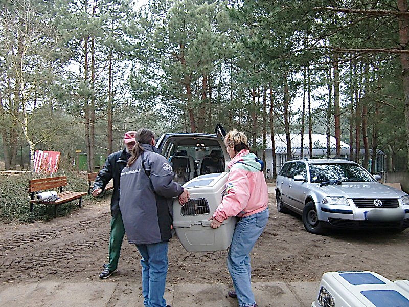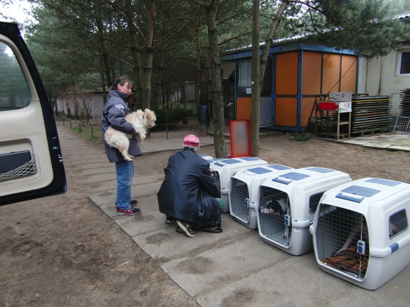 Und da wir kein größeres Transportfahrzeug mehr haben - es ist seit Jahren irreparabel kaputt - mussten wir wie schon so oft unsere Ehrenamtler um Hilfe bitten. Harriet und Detlef waren sofort wieder zur Stelle, so dass wir alle Hunde einladen konnten.