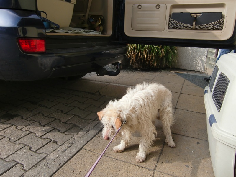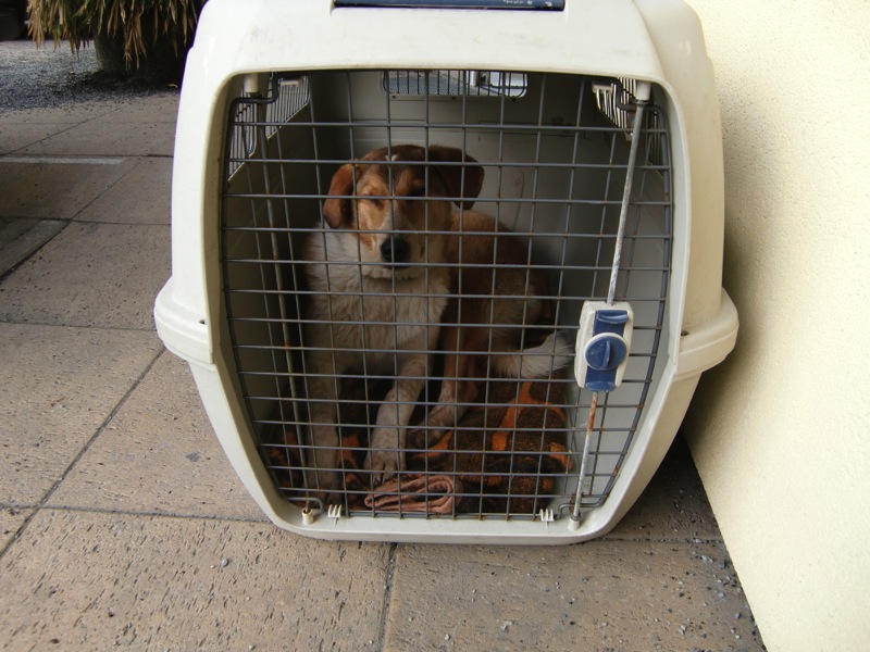Morgens um 6 wurden die Tiere vorbereitet. Nicht jeder hatte Freude daran. Ulla versuchte noch einmal zu entwischen - und auch Ferris und Miro waren wenig angetan von der Box. Aber es half ja nun mal nichts.