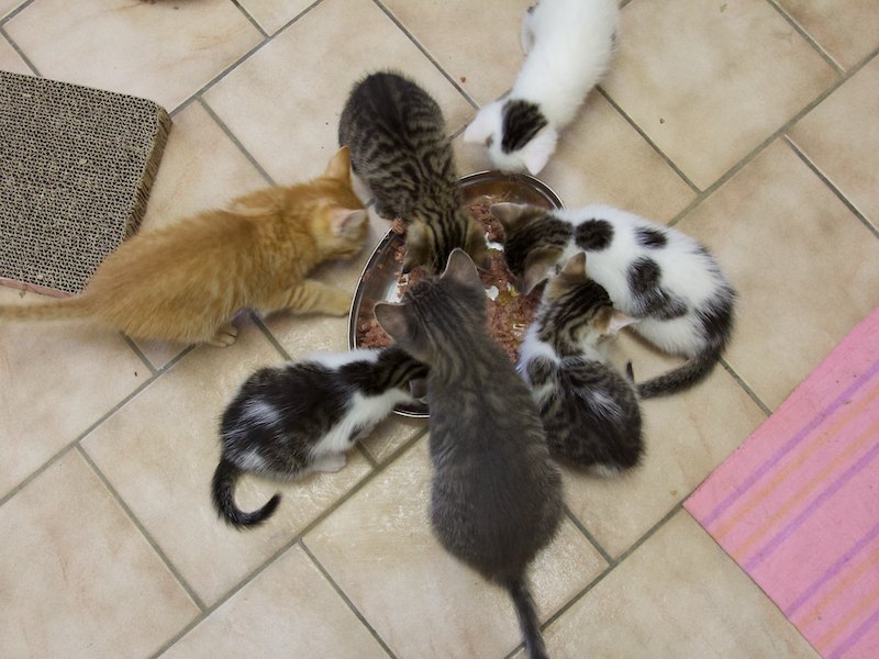 Manche Katze hatte nur ein oder zwei Junge. Aber die Kleinen sind ja nicht dumm und schauen auch immer mal bei anderen Müttern vorbei, ob an der Milchbar noch etwas zu holen ist.