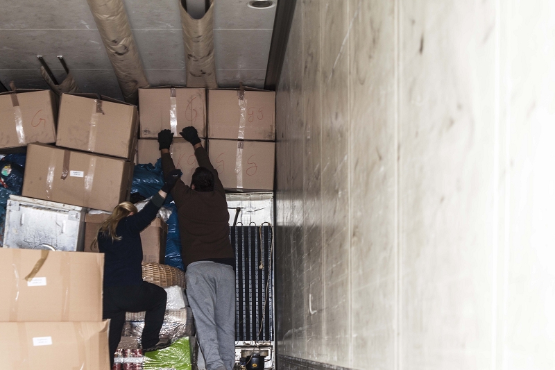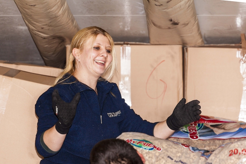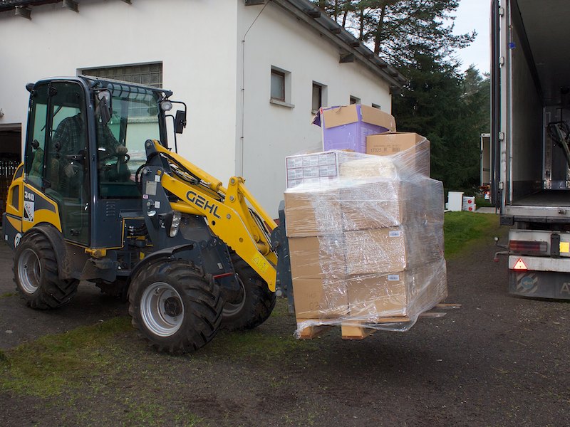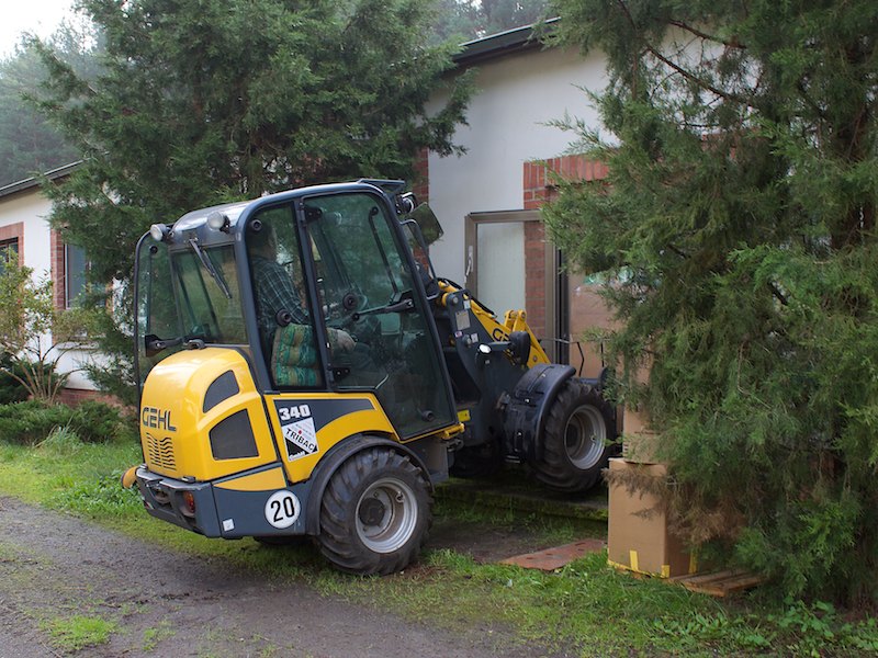 Nach ein paar Stunden anstrengender Verladearbeiten taten den Helfern die Knochen wieder tüchtig weh, denn einige Paletten mussten aufgelöst und neu verstaut werden, weil der LKW-Fahrer die Achsen anders beladen haben wollte.