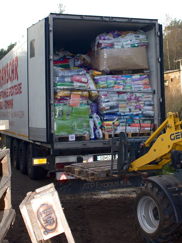 008Der LKW mit Futter- und Sachspenden ist seit Freitagnacht, 31.10., auf dem Weg zur SMEURA.