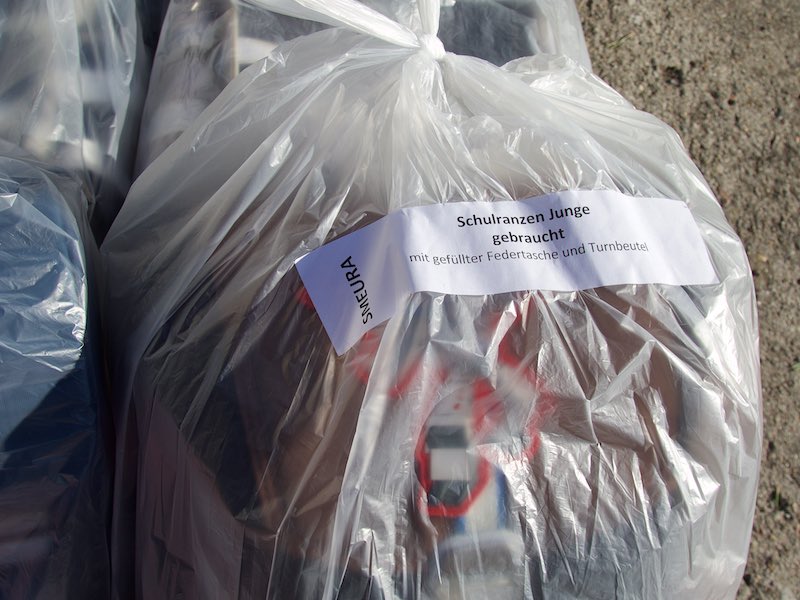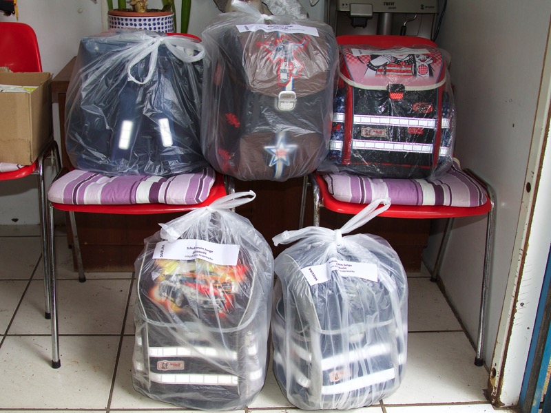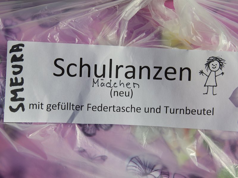 Bitte haben Sie Verständnis, dass wir nur einige Beispiele fotografieren konnten. Wir danken allen Spendern sehr herzlich für die tollen Ranzen und die schönen Beigaben! Stellvertretend für alle gilt unser Dank Familie Basti, Familie Maira, den Machern und Hörern vom Chaos-Radio-Berlin, Janine, Julchen, ...