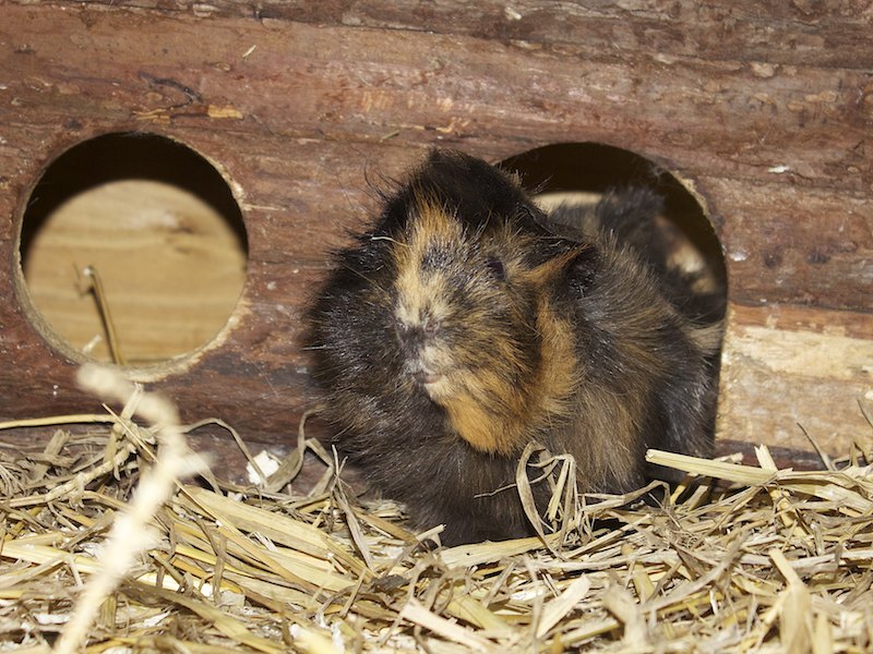 Wir haben mehrere Gruppen Kaninchen und auch Meerschweinchen. Dann unsere Ziegen, die tüchtig zuschlagen und jeden Tag Unmengen wegfressen.