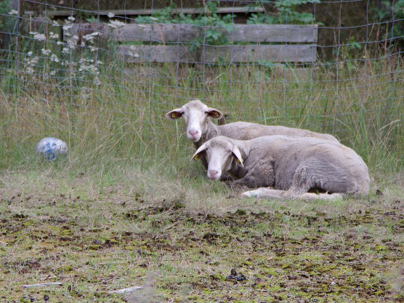 Die fünf Schafe, die wir vor kurzem aufnahmen und die jetzt bei uns leben, erhalten ebenso ihr Gnadenbrot wie unsere Ziegen - oder wie zuvor die Hängebauchschweine, Gänse usw., die jahrelang bei uns lebten, bis sie an Altersschwäche starben.