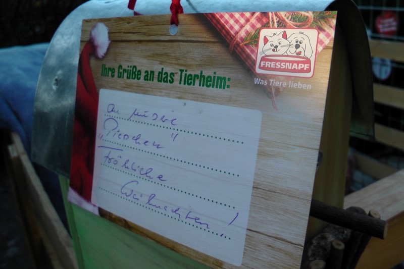 Der Fressnapf Berlin führte im Dezember das erste Mal eine Weihnachtsbaumaktion mit Wünschen von Tierheimtieren durch.