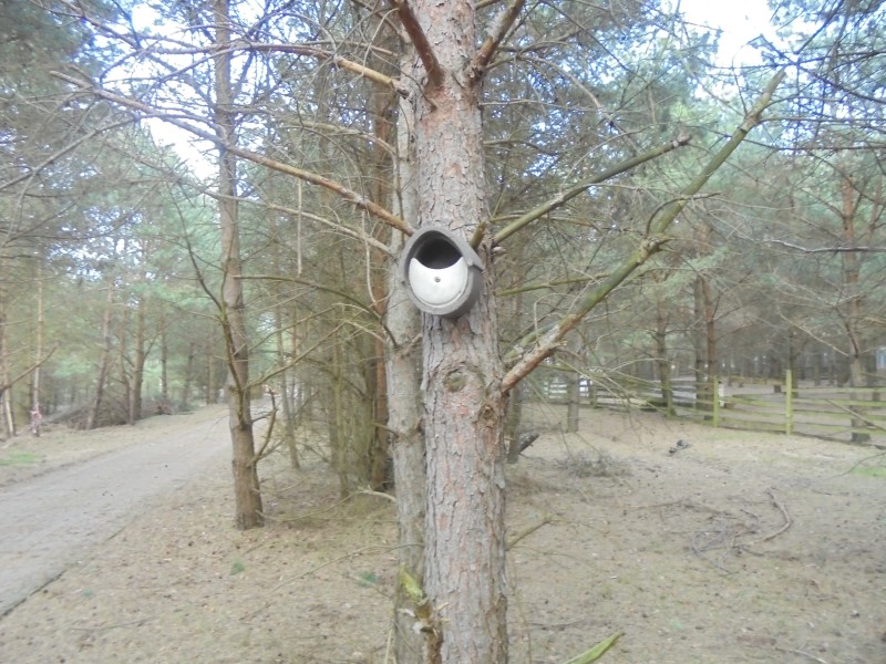 Alle Kästen sind nach Südosten ausgerichtet und haben freien Anflug aber Äste zum Schutz und Halt. Die Halbhöhlen müssen wir noch gegen die Eichhörnchen sichern, damit diese die Brut nicht räubern.