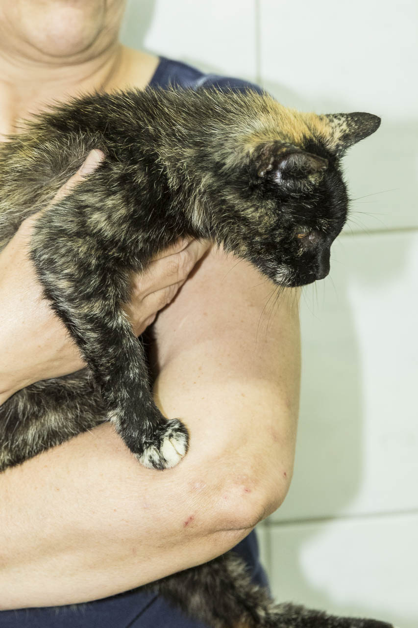 Sie war völlig abgemagert, wirklich klapperdürr. Laut unserer Tierärztin ist sie steinalt. Sie fürchtete schon, dass es auf's Einschläfern hinausläuft. Aber natürlich versuchen wir immer erst, ob wir das Tierchen wieder auf die Beine bekommen.