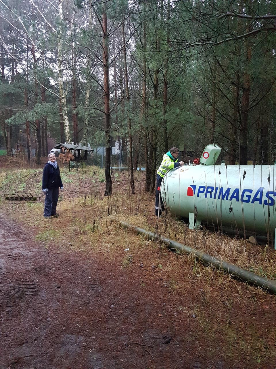 Durch die Größe unserer Gebäude kommt dann trotzdem etliches an Verbrauch zusammen. Bei der Anlieferung des Heizgases bekamen wir sogar ein bißchen Ärger, weil wir den Tank so leer gefahren hatten, dass er aufgrund zu geringen Druckes eigentlich nicht mehr hätte befüllt werden dürfen. Ist nochmal gut gegangen. Aber wir müssen in Zukunft früher bestellen.