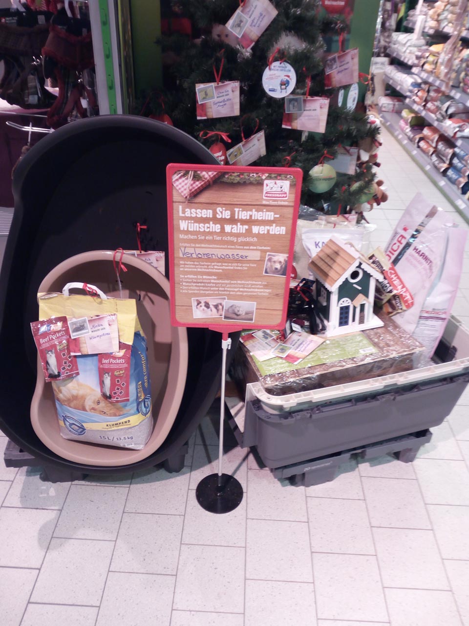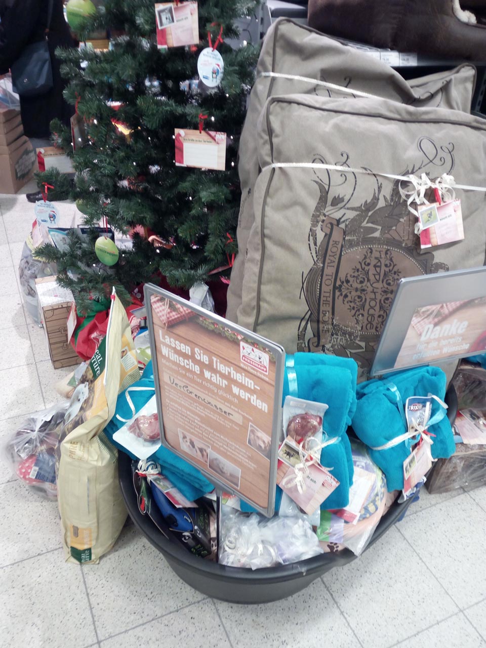 Die Bäume bleiben teilweise noch bis nach Weihnachten stehen, aber unser Tierheimleiter durfte in mehreren Berliner Filialen am 23.12. schon vorbeikommen und die bisher eingegangenen Spenden abholen.