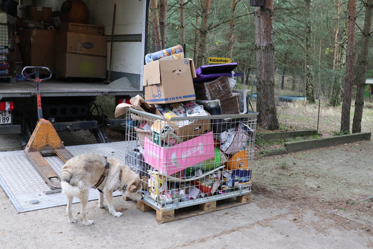 UND: Dann war da ja noch der LKW. Von Berliner Geschäften hatte unser Tierheimleiter ebenfalls reichlich Spenden abholen dürfen.