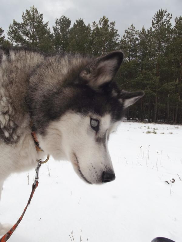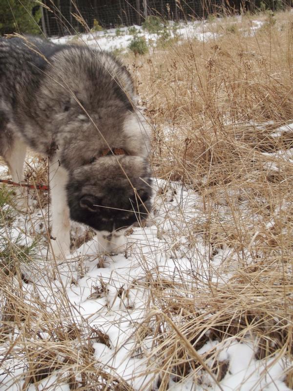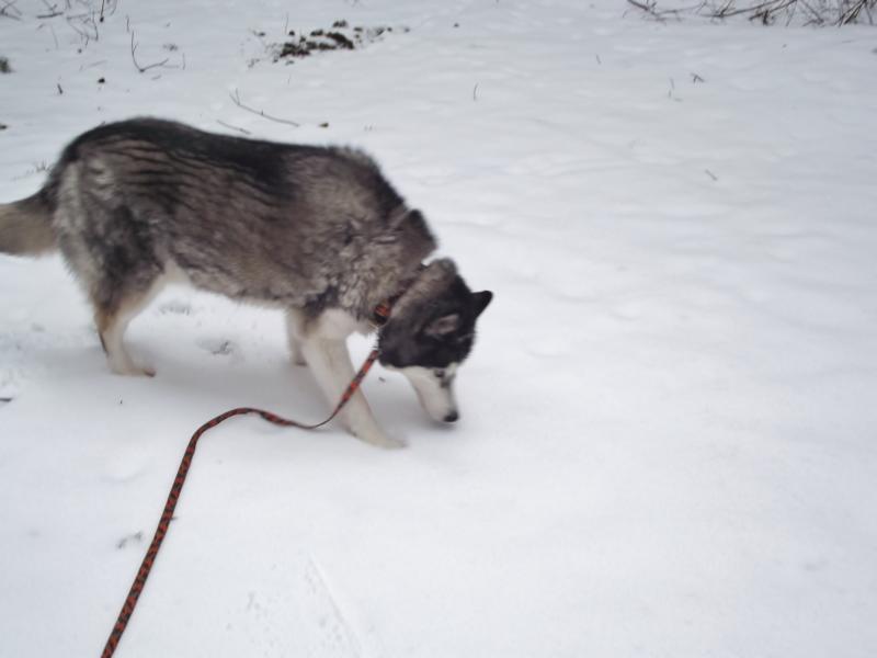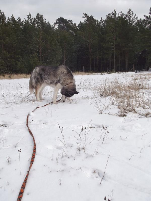 Aber die Lebensfreude ist noch da und ein Spaziergang im frisch gefallenen Schnee natürlich eine Freude für einen Nordischen.