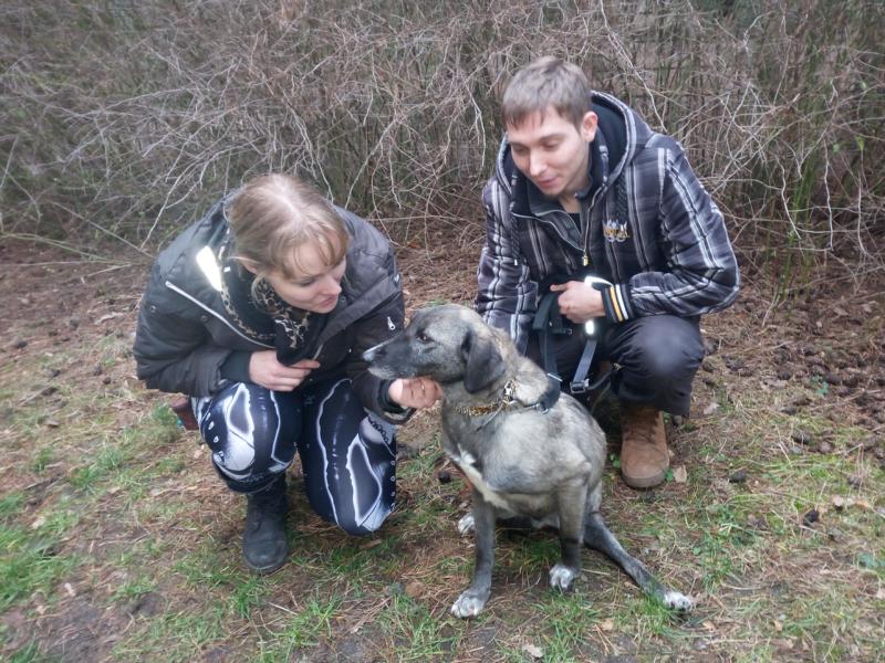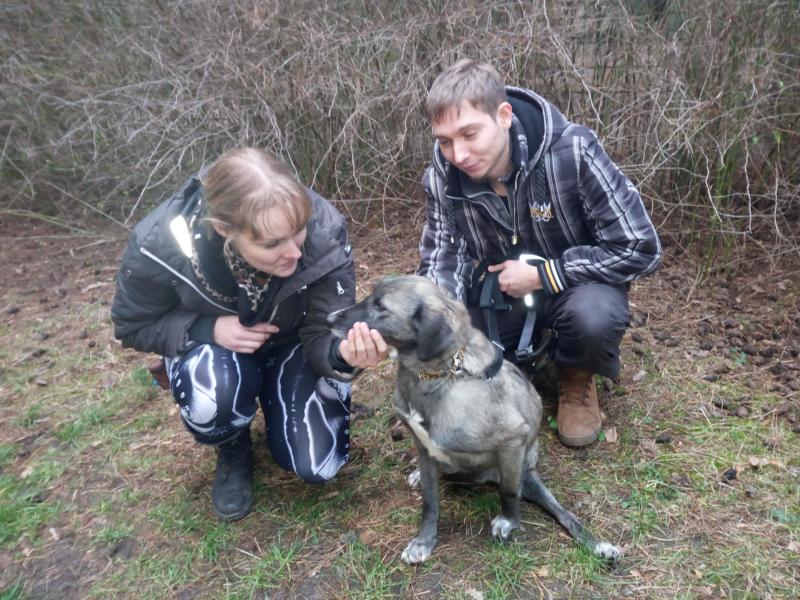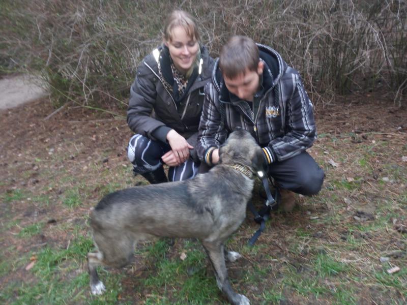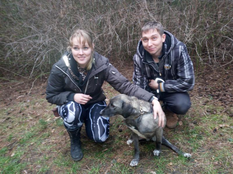 Damit während des mehrstündigen Fernsehdrehs die Arbeiten für unsere Tiere nicht auf der Strecke blieben, waren ehrenamtliche Helfer zur Verstärkung unseres Teams gekommen. Ein nettes junges Pärchen, das bereits einen Hund von uns adoptiert hat, beschäftigte sich an dem Tag u.a. auch mit den beiden Handicap-Hunden. Bei Fight und den jungen Leuten schlug der „Blitz“ ein: Liebe auf den ersten Blick!
