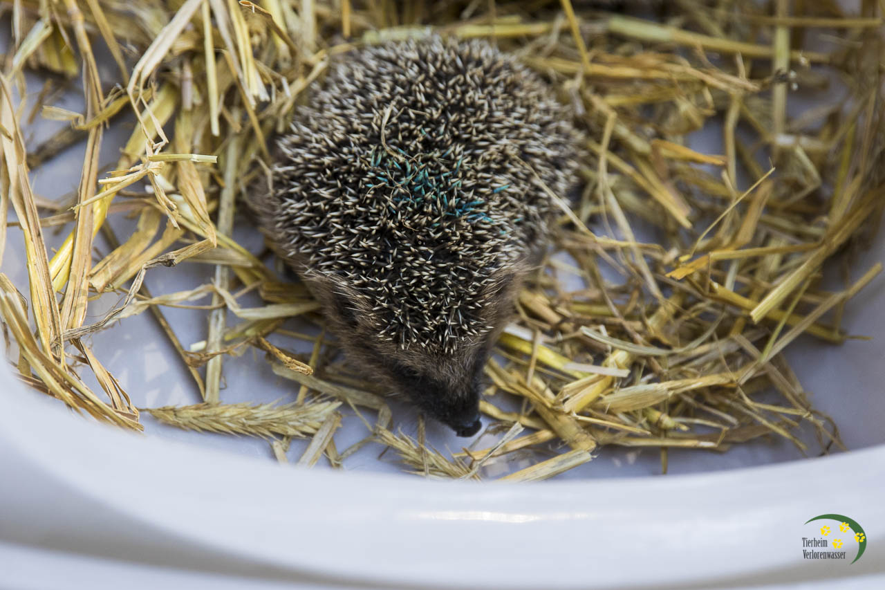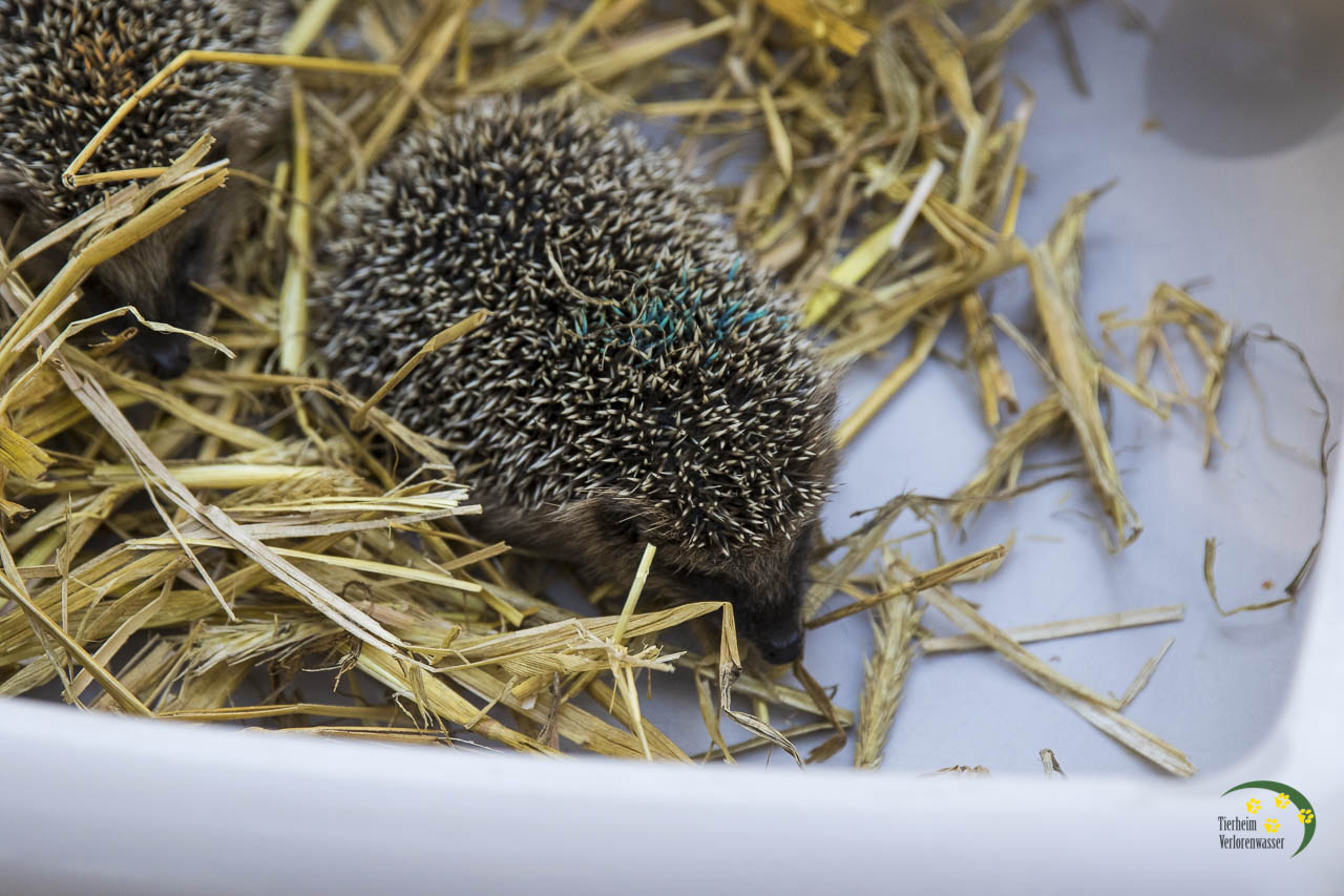 Wer die Fotos genau betrachtet, entdeckt unterschiedlich farbige Stachelspitzen bei jedem Igelchen ?. Das sind Farbmarkierungen, die unsere Tierpfleger angebracht haben, damit wir die Tiere unterscheiden und individuell versorgen können.
