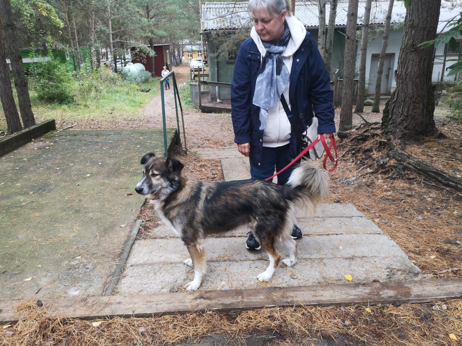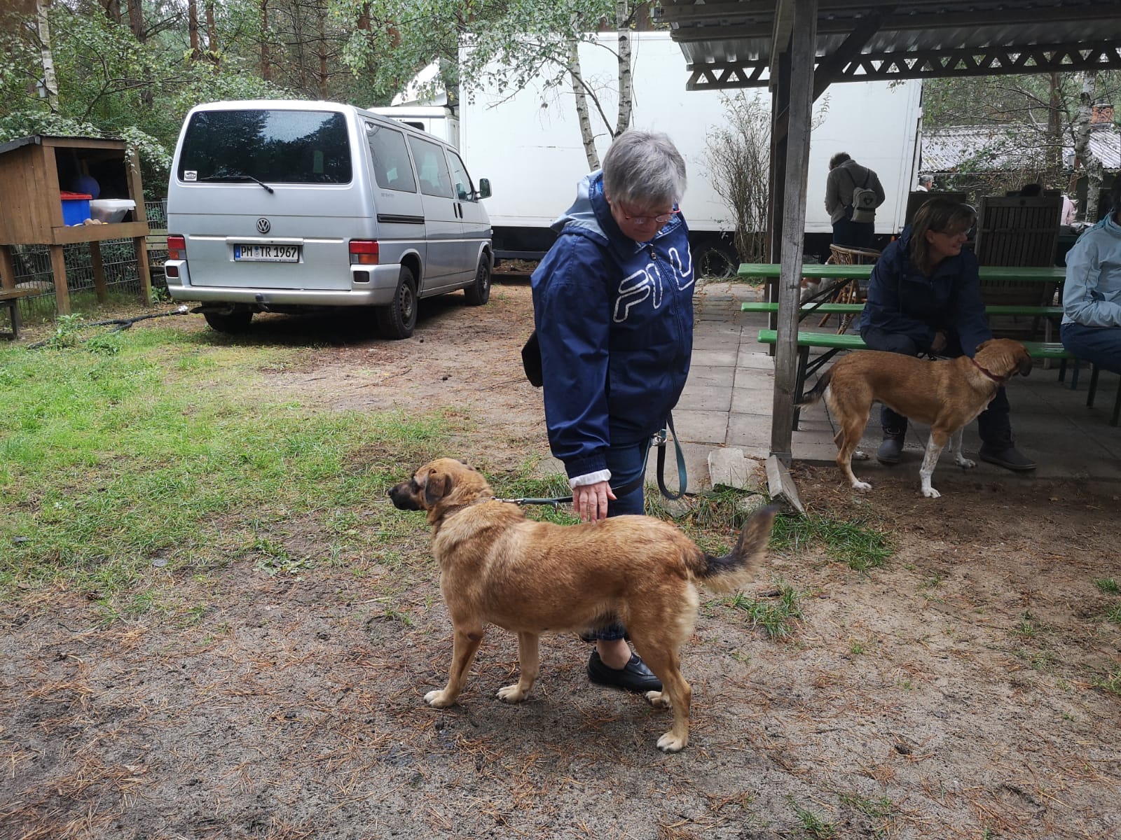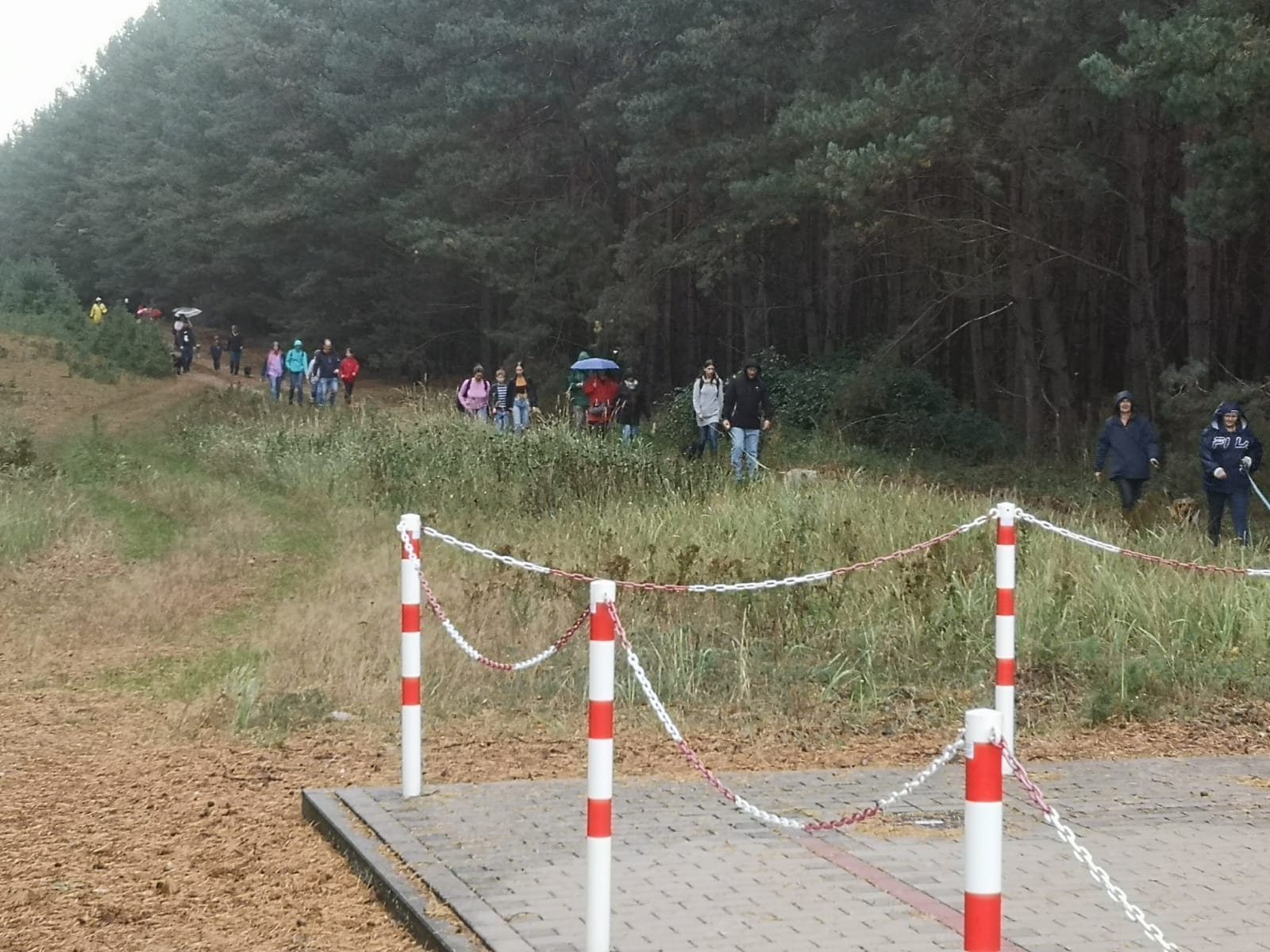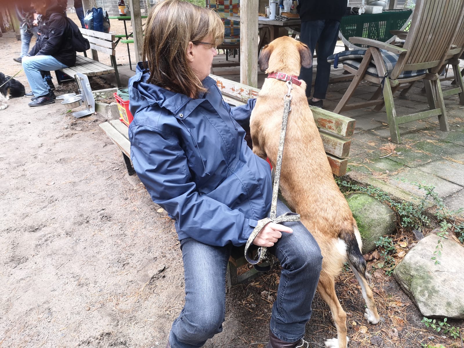 12.45 Uhr: die Gruppe kommt beim Treffpunkt für die Pause an; unser Tierheimleiter stellt Stühle und Bänke auf. Alle wollen sich schnell hinsetzen, damit die Sitze nicht vom Nieselregen nass werden.