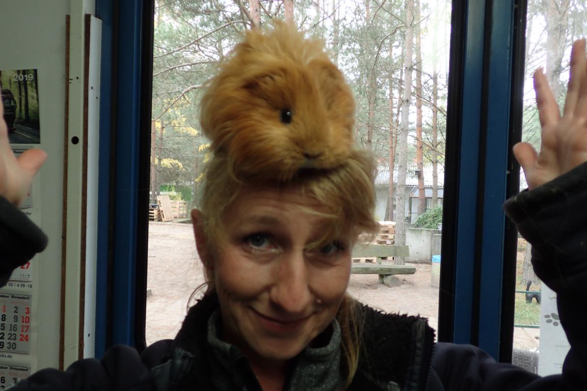 Otto - auch genannt Otto das Toupet - albert gern mit Tierpflegerin Simone herum.