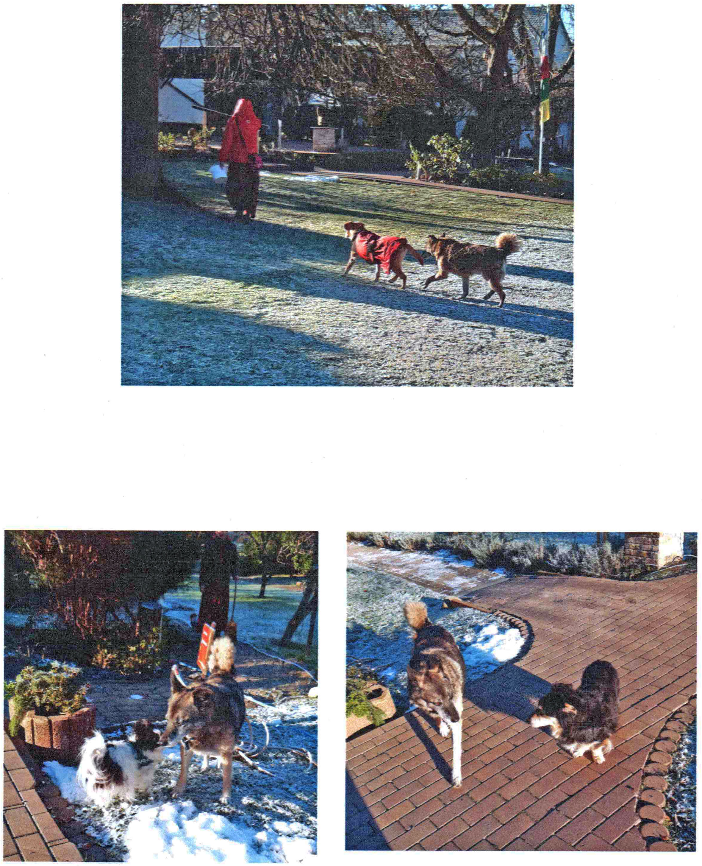 Da man ihn nicht anleinen kann, schob ihn sein neues Frauchen am Hinterteil hinaus. Draußen brach dann das Eis, wie auf den Fotos zu sehen ist.