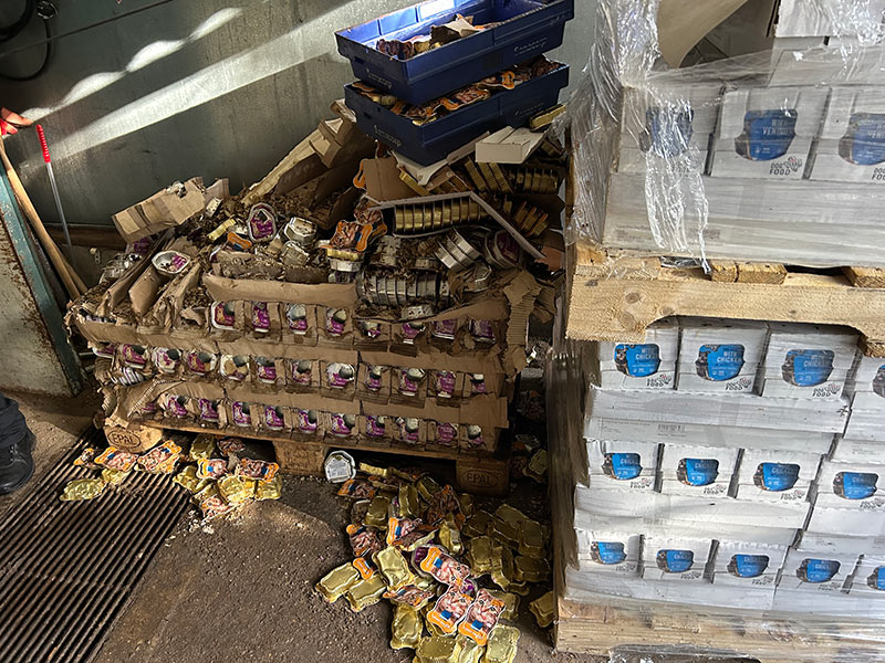 Bei einem Lager, das wir nicht täglich aufsuchen, hatten sie Zeit, sich Zugang zu verschaffen und eine Futterpalette zu plündern.