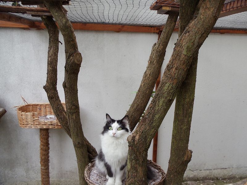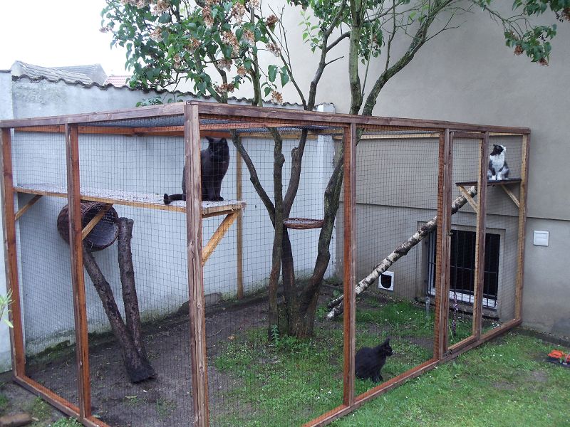 Da wir ja nicht mehr seit meinem unfreiwilligen Ausflug ins Freie dürfen,hat sich unser Dosenöffner auch was ausgedacht,ein Freigehege,nur für uns Drei! Das ist eine super Sache und das nehmen wir jetzt gerade im Sommer sehr gerne an!