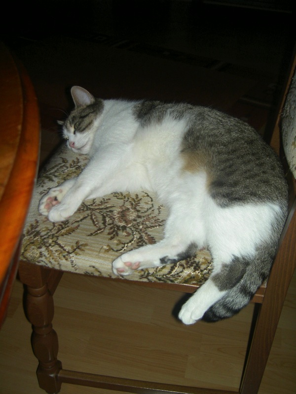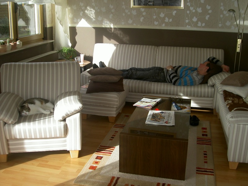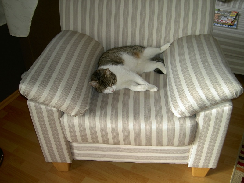 Seit gestern liegt sie über Mittag im Sessel,wenn Herrchen seinen Wochenendmittagsschlaf hält!!
