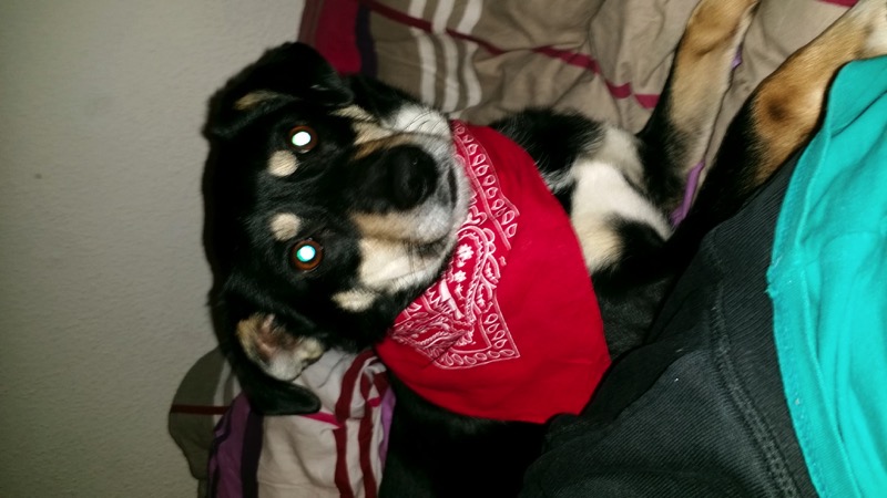 "Guten Abend liebes Tierheim Verlorenwasser :) Hier die erste Meldung von dem kleinen Pico (Rico). Der kleine Mann hat sich super ins Familienleben eingelebt, er ist allerdings noch etwas Schüchtern doch das wird sich mit der Zeit ändern :) Wir haben seinen Namen auf Pico geändert weil Rico uns nicht nach typisch Hund klang & wir den namen Pico immer mit den Gummibärchen Picoballer verbinden & da der kleine als erstes wo er hier war mit dem Ball gespielt hat, hat es auf Anhieb gepasst :) Am Donnerstag wird Mutti das erste mal den Tierarzt kontaktieren um herauszufinden was nun mit Picos Pfote ist. Das Treppen tragen genießt er jedes mal aufs neue, er versucht mir dann immer im Gesicht zu schlabbern :D doch das & das anspringen wollen wir ihn abgewöhnen :)Die erste Nacht hat er mit im Bett verbracht weil er so ängstlich war, doch nun schläft er mit viel freude neben dem Bett in seinem eigenen kleinen Bettchen, ausser Vormittags wenn ich in der Schule bin, da legt er sich dann doch öfters noch in mein Bett :) Ihm geht's auch hervorragend, hat hier schon mit vielen netten Nachbarn & Nachbarhunden bekanntschaft gemacht, die großen Rüden gefallen ihm nicht so sehr, dafür aber die kleinen Weibchen umso mehr :D Wie ihr sehen könnt hat der liebe Pico für die kalten Tage ein schönes rotes Halstuch bekommen, da sind die anderen Hunde immer ganz Neidisch drauf :p