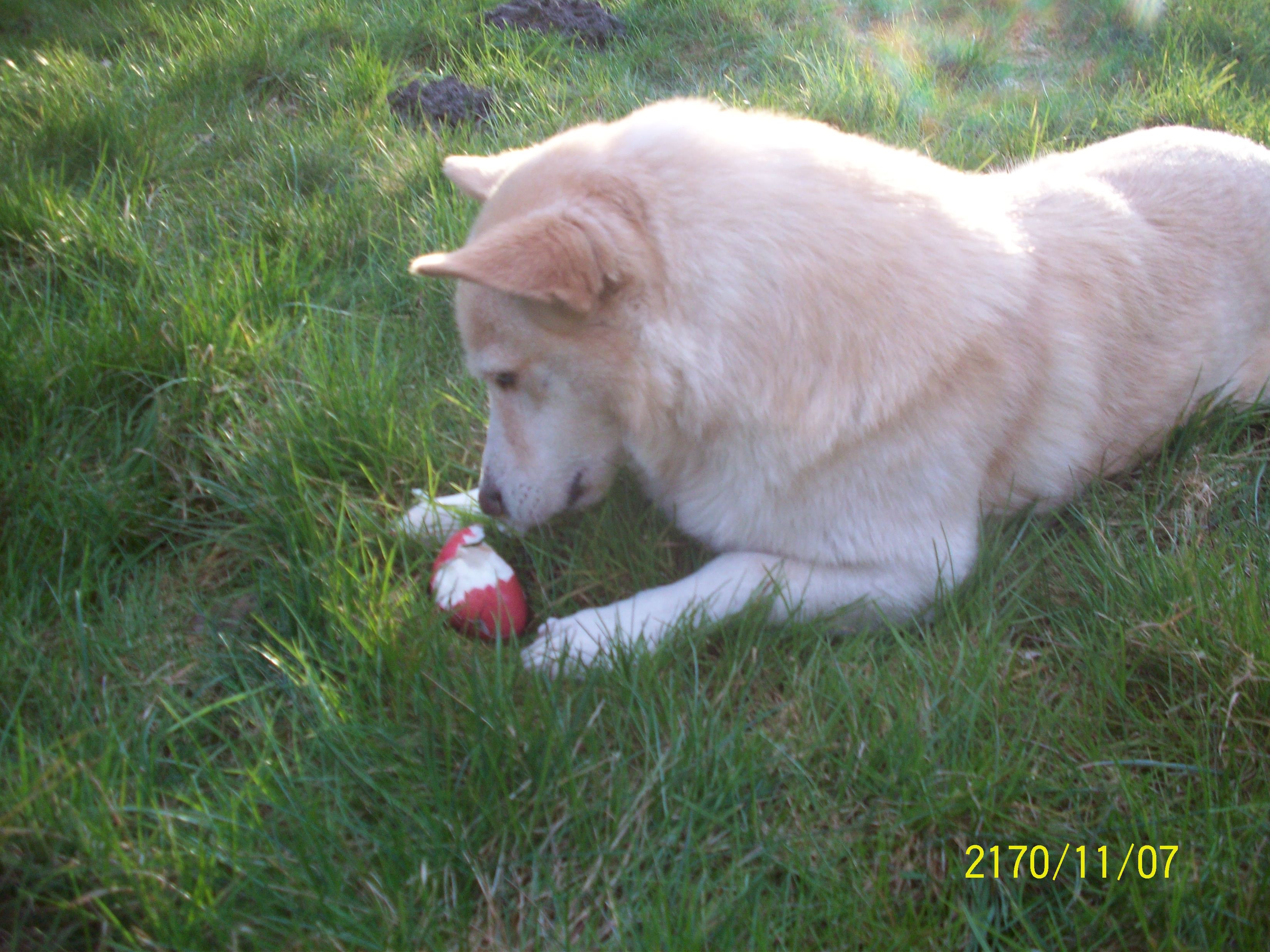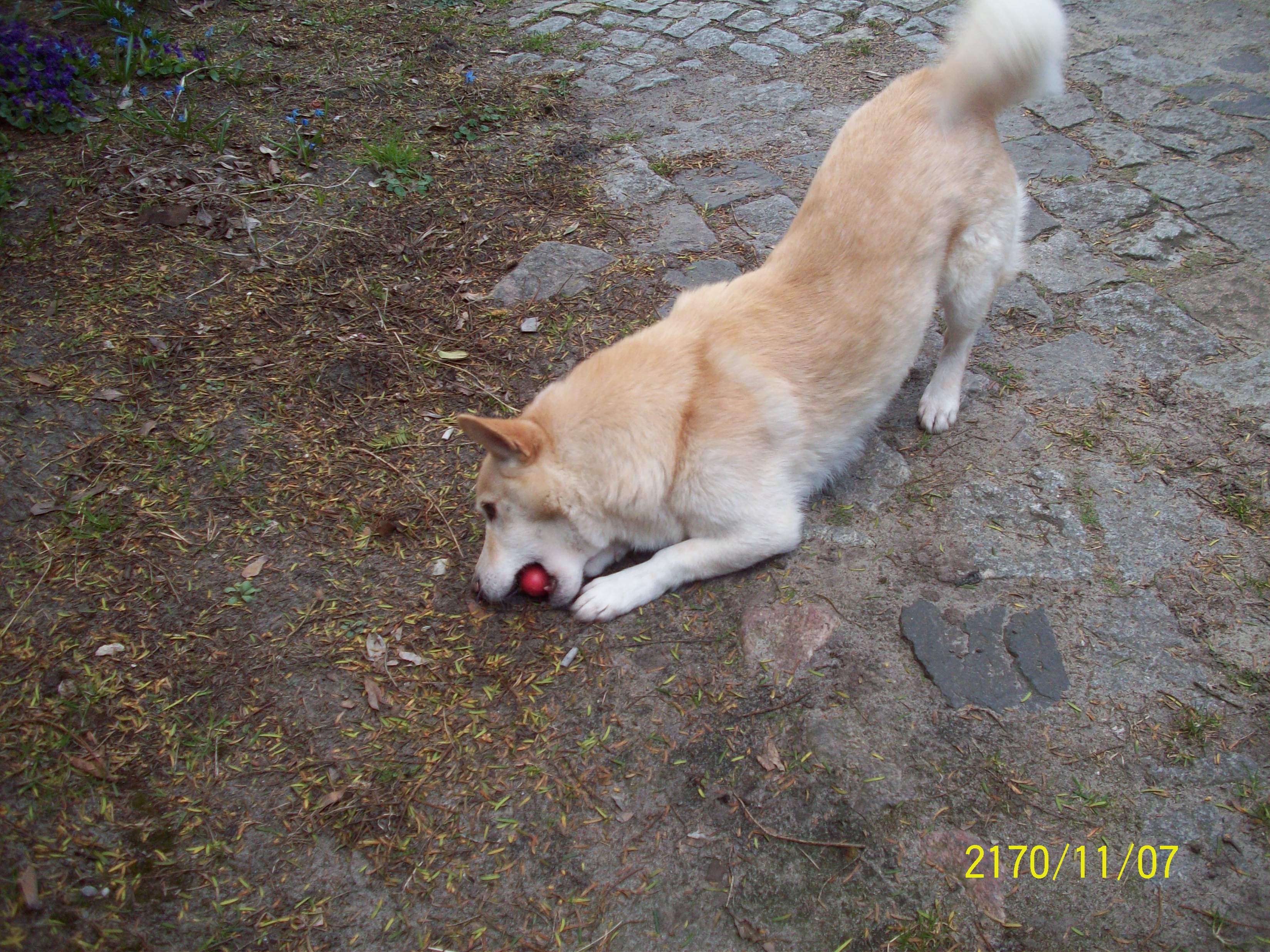 Auch Spielen musste ich erst lernen, doch jetzt spiele ich unglaublich gerne. Es gibt für mich fast nichts tolleres als mit meinem Ball durch den Garten oder den Flur zu rennen und mit meiner Familie zu spielen. In den zwei Monaten habe ich schon sehr viel gelernt und mich gut entwickelt, ich habe im Haus gar keine Angst mehr vor all den Dingen, die hier rumstehen. Außerdem habe ich schon „Sitz“, „Platz“, „Peng“ und „Gib Pfötchen“ gelernt. Frauchen sagt immer, dass ich alles sehr schnell verstehe und ein kluger Hund bin. Wenn ich mal eine Weile alleine sein muss, benehme ich mich auch sehr vorbildlich. Meistens liege ich dann einfach auf de Couch. Die ist nämlich viel bequemer als mein eigener Platz im Wohnzimmer. Nachdem ich mich richtig eingelebt habe, habe ich meiner Familie auch gezeigt, was für ein aktiver Hund in mir steckt. Ich gehe regelmäßig mit meinem Herrchen joggen und das Toben darf auch nicht zu kurz kommen. Das einzige, was mir mitterlweile noch wirklich Probleme bereitet, sind die Motorradfahrer, die bei dem schönen Wetter durch den Ort rasen. Da bekomme ich immer Angst und möchte weglaufen, aber auch das wird langsam besser. Mit den richtigen Leckerchen lasse ich mich auch immer mehr davon ablenken. Ostern habe ich auch sehr schön verbracht. Der Osterhase hat dieses Jahr auch an mich gedacht und ich durfte im Garten meine Geschenke suchen. Ein Ei gabs für mich natürlich auch. Ich bin gespannt, was ich in der nächsten Zeit noch alles erleben werde.
