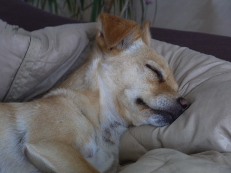 Ich bin gesund und munter, kann sausen wie der Wind, habe mit Frauchen viel  trainiert  und viele meiner Ängste abgelegt.  Nur Fremden gegenüber bin ich noch immer sehr zurückhaltend. Aber Frauchen meint, dass ist völlig in Ordnung. Ich gehorche  auf` s Wort (...naja, meistens…), kann Sitz, Platz, Bleib und noch vieles mehr und  so sind wir meist ohne Leine in Wald und Flur unterwegs, auch wenn mir  nicht jeder  dieses  Stückchen  Freiheit gönnt und meine Familie sich schon beschimpfen lassen musste, obwohl ich ganz artig war. Aber Frauchen sagt, wer mich nicht leiden kann ist  selber schuld. Die ersten Wochen  im neuen zu Hause wollte ich mich ja auch nicht anfassen lassen und habe mich dann immer verkrochen. Nun, auch das hat sich gegeben.  Meine Familie kann mich kraulen von vorn nach hinten,  von oben nach unten und wieder zurück.  Aber nur meine Familie!!
