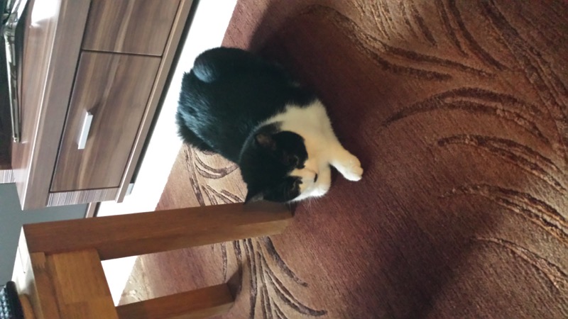 Das Wohnzimmer ist  Ihr Raum, dort schläft sie auf dem Fernsehsessel oder auf der Couch und turnt auf dem Kratzbaum  und Wohnzimmerschrank herum, abends ist dann auf der Couch Kuschelzeit , oder man kommt für einige Augenblicke auf den Schoß um sich kraulen zu lassen oder um zu Schlafen, am besten mit Körperkontakt.