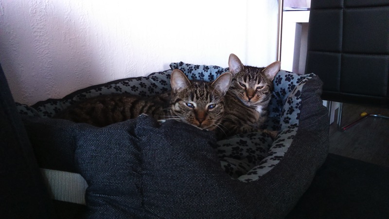 es sind jetzt 3 Wochen vergangen, als wir die beiden Kater Timmy und Jimmy von Euch abgeholt und nach Berlin "umgesiedelt" haben. Es wird Zeit, zu berichten, wie unproblematisch die Fahrt und der Einzug in ihr neues Zuhause verlaufen sind. Beide Kater haben sich ohne große Berührungsängste sehr schnell an ihr neues Zuhause gewöhnt und mittlerweile das "Regiment" übernommen...schnurr. Soll heißen, die persönlichen "Dosenöffner" erfüllen fast jeden Wunsch, man (Kater) schläft im Bett und kann sowohl in der Wohnung, als auch auf dem gesicherten Balkon nach herzenslust toben. Es sind wirklich zwei außerordentlich liebenswerte Katerchen, mit so unterschiedlichen Charakteren.