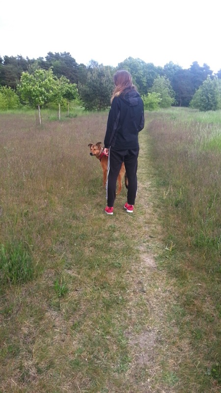 Die täglichen Spaziergänge werden immer ausgedehnter und die Begegnungen mit etwas Neuem sind trotz ihrer Angst gut händelbar."