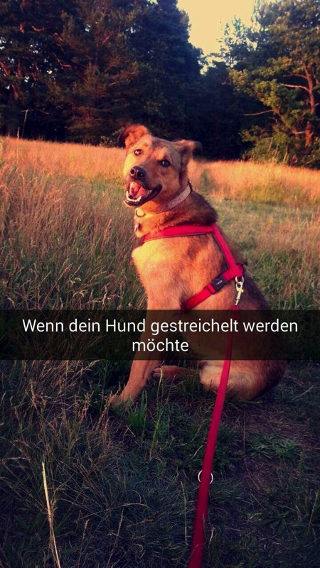 Nach gut einem Monat bei meiner neuen Familie möchte ich euch mal ein Lebenszeichen von mir schicken. Ich fühle mich hier pudelwohl:täglich lange Spaziergänge ( inklusive Kuschelpausen ), lecker Futter und nen total weiches Bettchen (das ich weder umräume noch anknabbere ). Jeden Tag lerne ich etwas Neues, auch wenn mir meine Ängstlichkeit manchmal im Weg steht,aber meine beiden Frauchens und die Hausmiezen sind sehr geduldig mit mir.