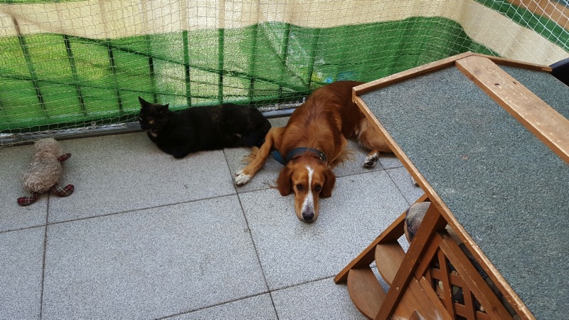 "Hallo, erst einmal ein paar sommerliche Grüsse von Baghira und Sandpfote. Beide lieben den Balkon. Baghira wollte ja lieber Hund werden und liebt den "Verrückten "Daumen. Unsere Oma konnte sich heute sogar erinnern,wo die Pools stehen.