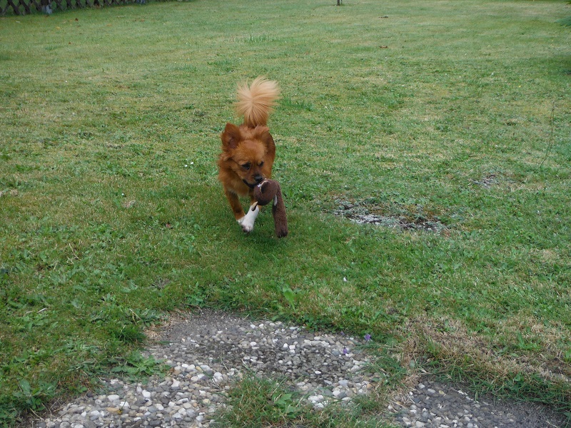 Sie hat sich sehr gut eingelebt, hört schon ganz gut auf ihren Namen. Schlafen tut sie in ihrem Häuschen und am Tag tobt sie durch den Garten. Stubenrein ist sie auch so gut wie. Mit dem umlegen des Halsbandes hat sie noch ein bißchen Probleme, manchmal läuft sie erst mal ein Stückchen weg und hat Angst, läßt sich aber mit Lecklis anlocken. Sonst haben wir keine Probleme. Alles Top!!