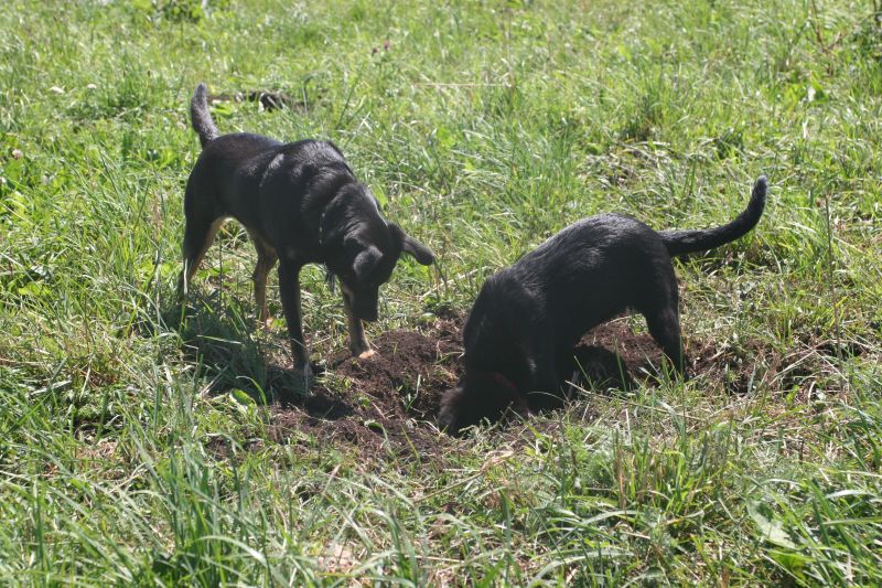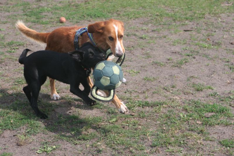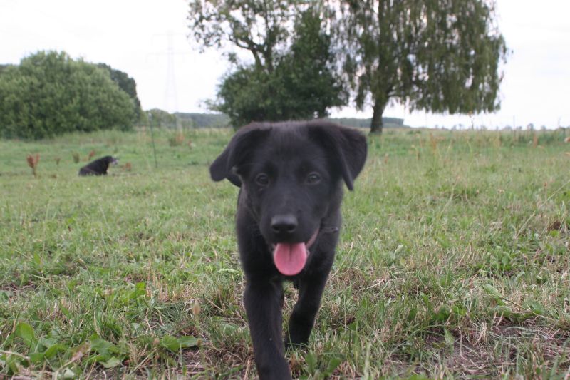 Am meisten Spass macht es Daim in die langen Setterohren zu beissen und dran ziehen und schwupp hat man ihn auch schon zum Spielen animiert... Dann wohnen bei uns noch Katzen, da habe ich ganz schnell gelernt, dass ich diese nicht jagen sollte, die drehen sich rasend schnell um und knallen mir eine - das zeckt ganz schön...