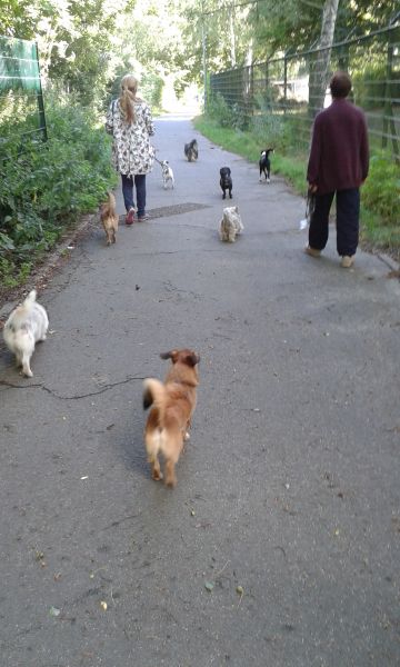 mit meinem Frauchen Gassi oder sie mit mir und im Sommer sind wir teilweise eine Truppe von 10-12