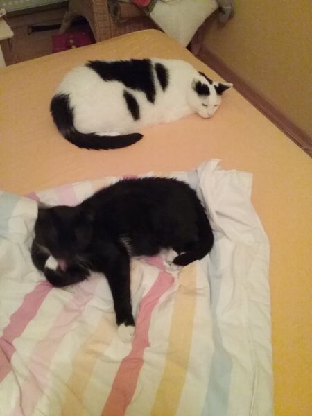 lange wußte ich ja nicht, ob Shadow bei mir bleiben kann, da sich mein Kater Jerry sehr schwer tat mit ihm. Und das, obwohl Shadow weder aggressiv noch dominant ist. Jerry war einfach an einen alten, phlegmatischen Kater gewöhnt (der im Sommer getorben ist), und ein 2-Jähriger war ihm ganz unheimlich. Aber er hat einfach lange Zeit gebraucht, die ich ihm ja auch geben konnte, weil es keine Aggressionen oder Panik gab. Inzwischen hat er sich gewöhnt, läßt sich manchmal noch verunsichern, blüht aber auch auf, weil Shadow etwas mehr Action in sein Leben bringt. Ich bin jedenfalls sehr glücklich, daß Shadow hierbleiben kann, er ist ein ganz entzückender Kater. Und ich denke, ihm geht es bei uns auch gut, er hat sich ja von Anfang an benommen, als wäre er nie woanders zu Hause