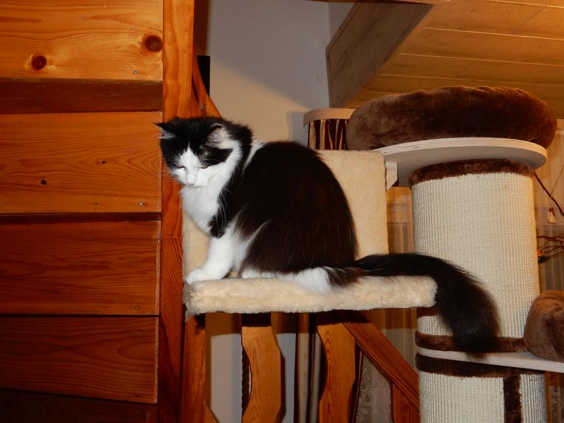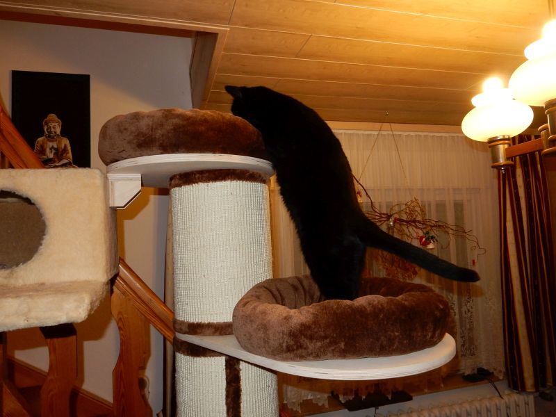 Er hat uns ein super Kratzbaum geschenkt, der sofort erkundet wurde!