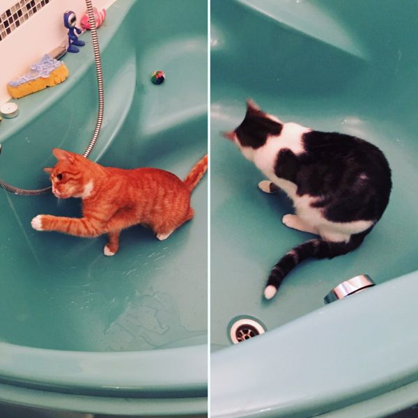 Wir fühlen uns immer noch pudelwohl hier… obwohl wir unser Heimchen mit einer anderen Katze und fünf Kindern teilen! Es gibt viele Spiel- Rückzugs und Erkundungsplätzchen. Unsere Herrchen sind stets bemüht neue Spielsachen zu finden… aber ein Karton bleibt ein Karton und ist das beste welches es zum Spielen und Entdecken gibt. Mila’s absoluter Lieblingsplatz ist das Spülbecken in der Küche oder wir sitzen jeden Morgen wenn sich Frauchen fertig macht in der Wanne um mit dem Wasserstrahl zu spielen.