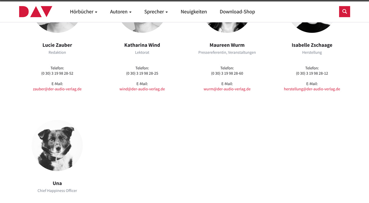 Alle freuen sich über die vierbeinige Kollegin - ich mich natürlich ganz besonders. Während ich diese Mail schreibe, liegt Una dösend auf der Couch und erholt sich von einer „anstrengenden“ Arbeitswoche ;).