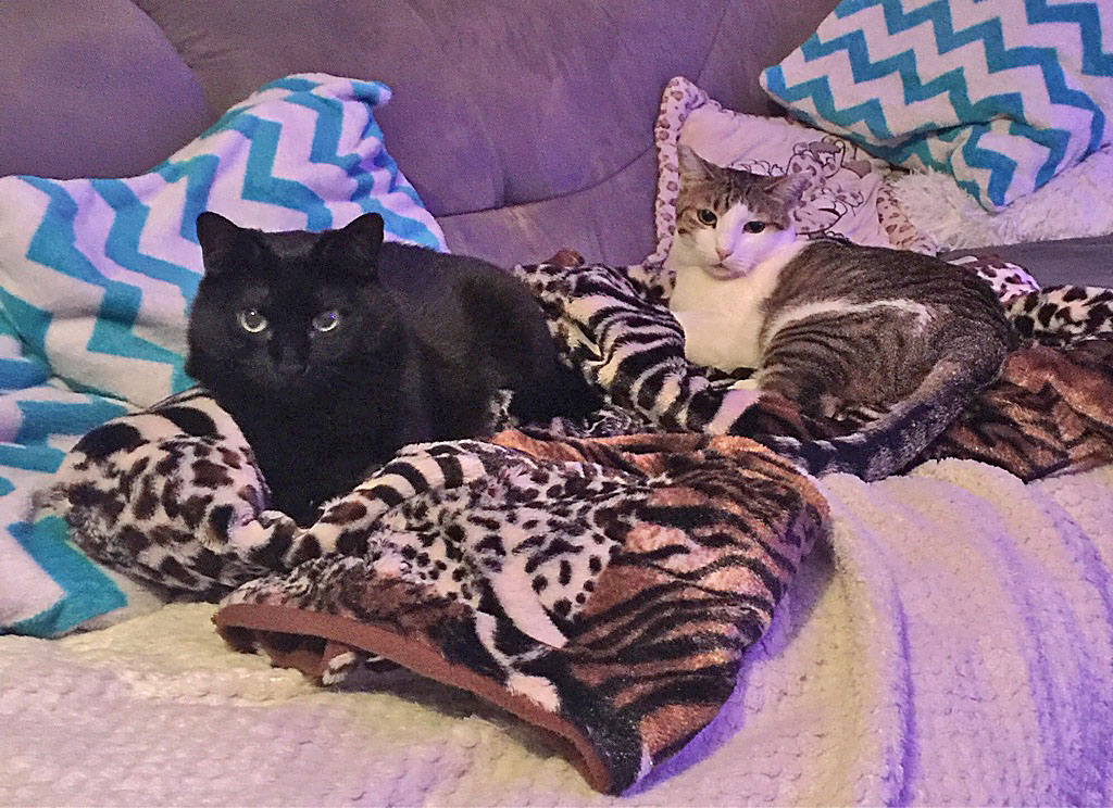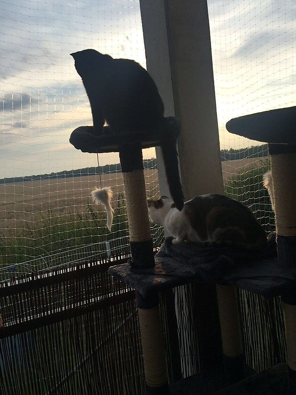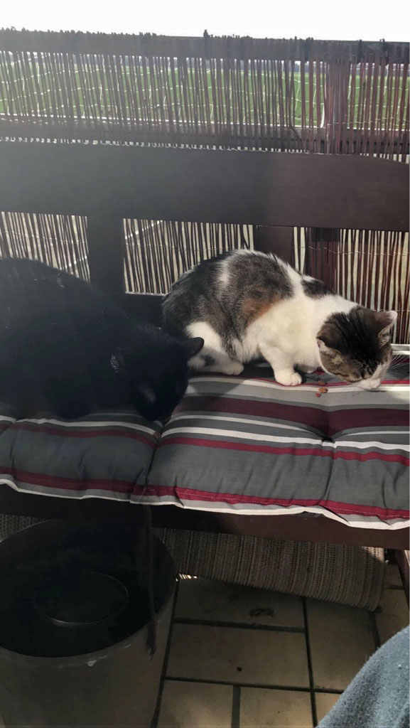 Mit meiner Kumpeline mache ich die Bude unsicher, turne über die Kratzbäume oder sonne mich auf den Balkonen.