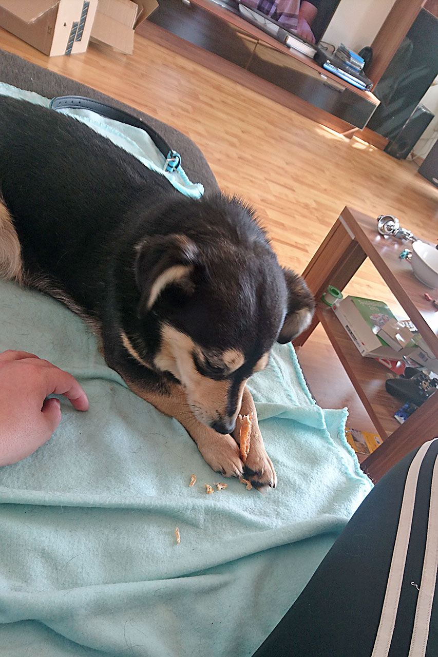 ich darf Lana nun seit einer Woche genießen und liebhaben. Sie macht sich super! Sie hat sich sehr schnell zu Hause und wohl gefühlt. Sogar gefressen hat sie seit dem ersten Tag an, problemlos. Das Fell ist schon richtig weich und glänzt jeden Tag mehr. Sie hat sich sehr schnell auf mich fixiert und hört super.