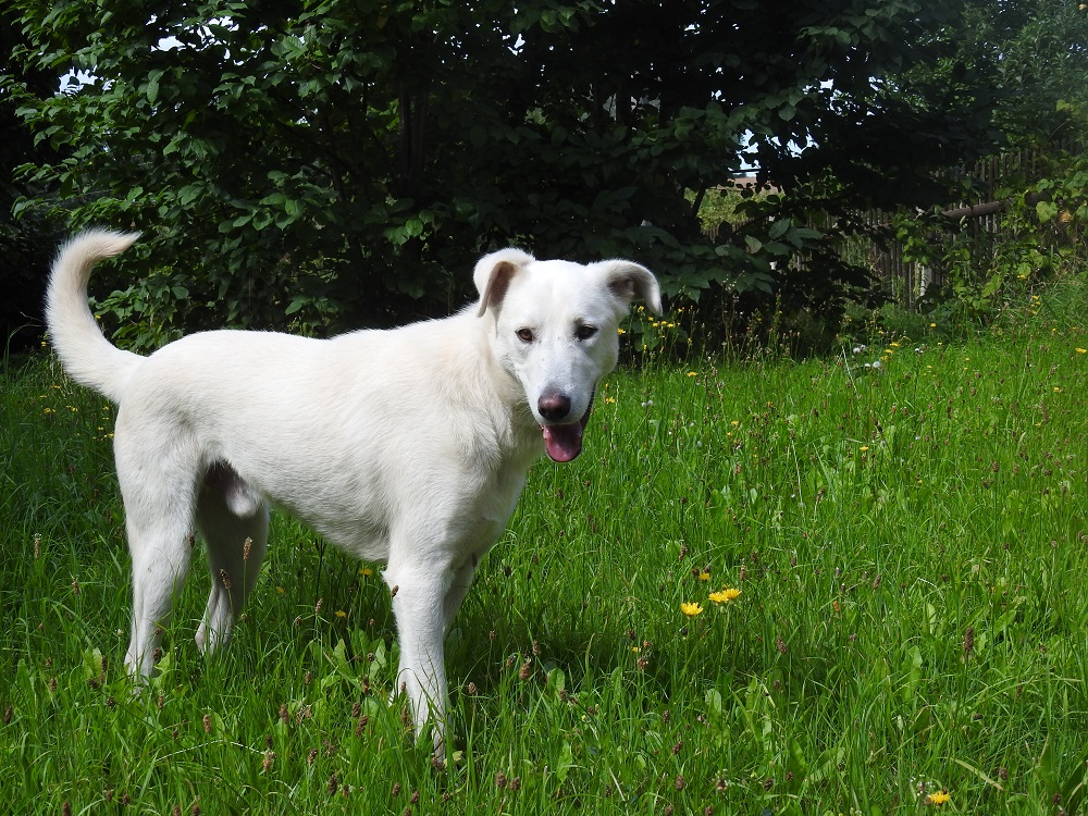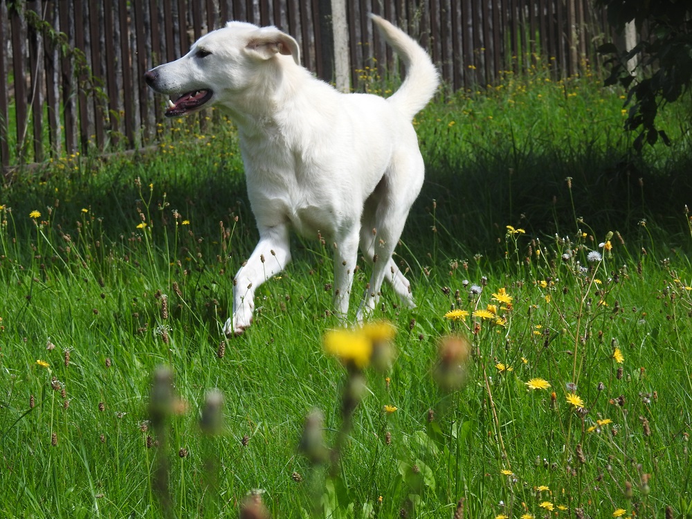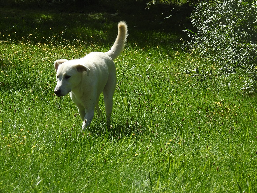 Zu Hause angekommen, zeigte ich ihm das Haus von innen und den Garten und machte ihn von der Leine ab. Er machte keine Anstalten, abzuhauen oder sich zu verstecken. Wir machten dann auch gleich unseren ersten Spaziergang, wo er sich kein einzigstes Mal hinschmiss oder sich verweigerte. Alsdann betätigte er sich als Schatten und folgte mir überall, wo ich hinging.