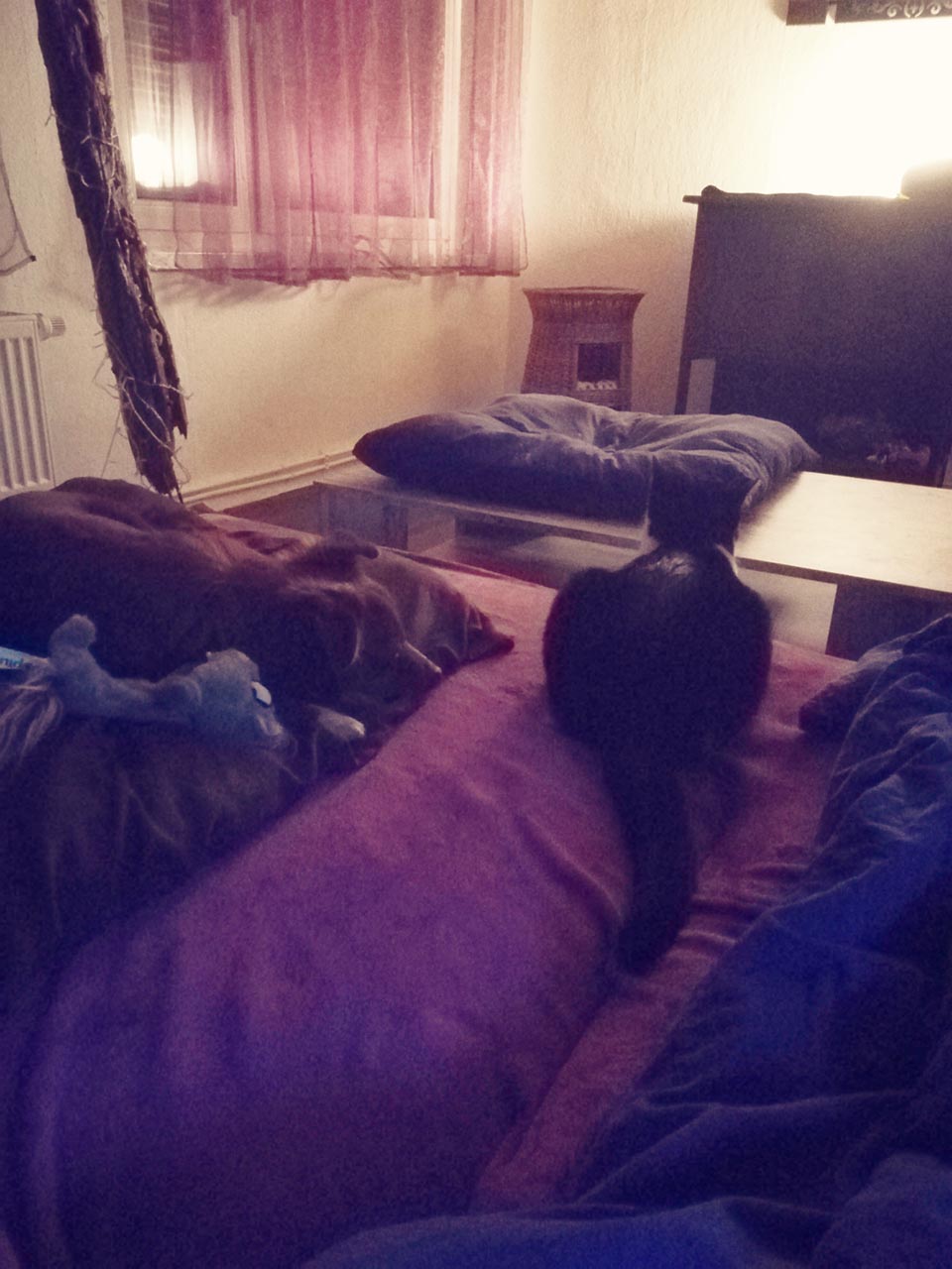 Dann gabs noch ne Pippirunde und als ich ins Bett gehen wollte, lag Gustav schon drin