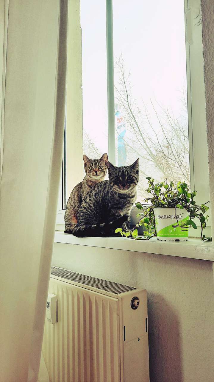 vor sechs Tagen adoptierten wir die beiden 4-monatigen Kätzchen, Samu und Serafina (ehemals Sissy). Sie haben sich inzwischen schon ganz gut eingelebt- spielen und toben viel, werden mittlerweile gern gestreichelt & haben schon ihren ein oder anderen Lieblingsplatz auf dem Schrank, im Wäschekorb, Bett oder auf den Unimitschriften. (;