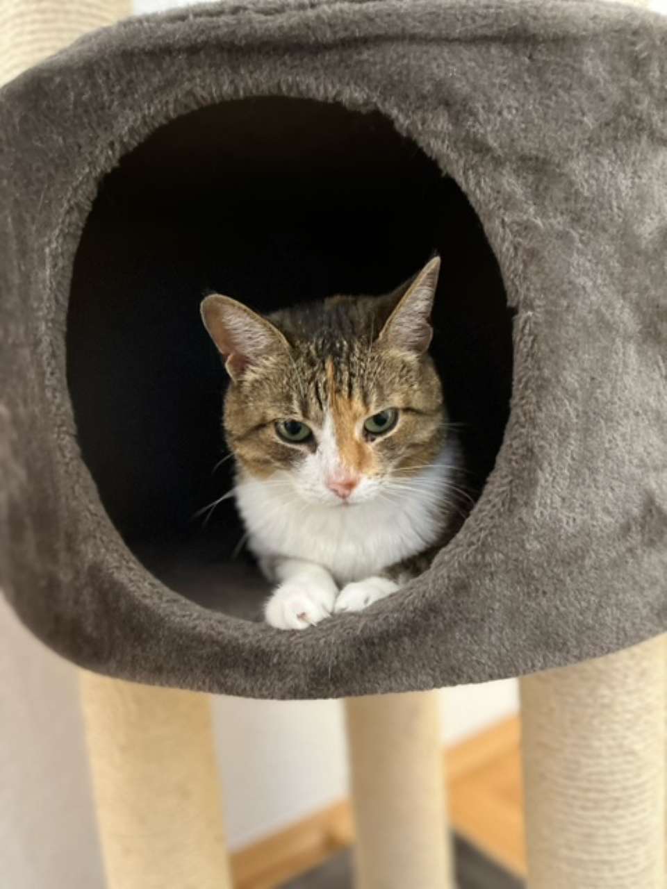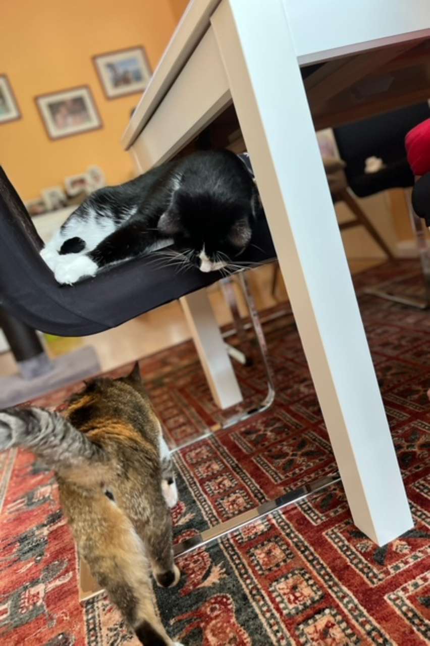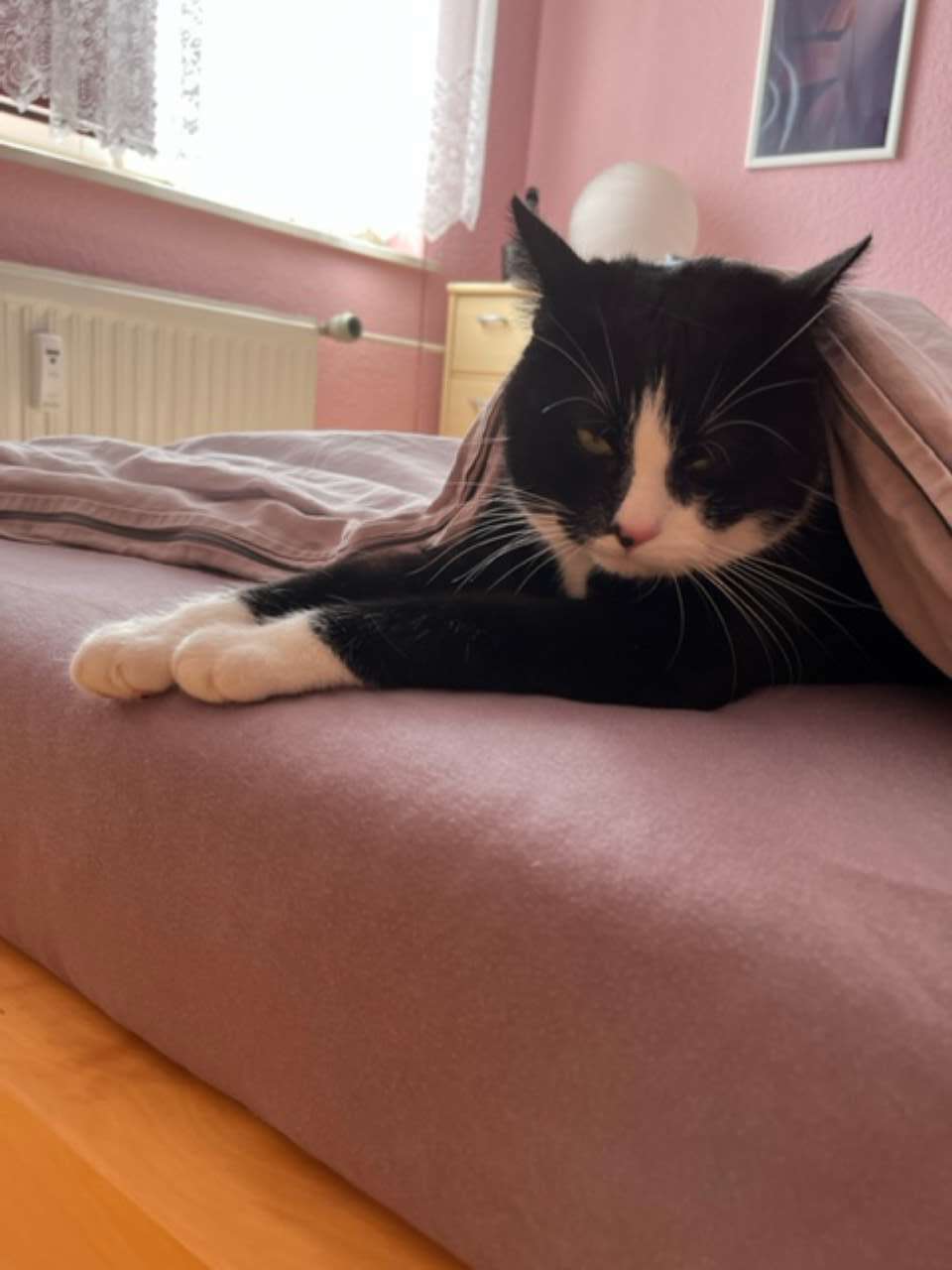 ich bin sehr gut in meinem neuen Zuhause angekommen. Ich fühle mich hier sehr wohl. Im Moment schlafe ich überall. Mit dem Kater Kuki habe ich mich in den ersten Tagen nicht sehr gut verstanden. Aber jetzt haben wir uns angefreundet und knurren uns nicht mehr so oft an. Vormittags spielen wir fangen.