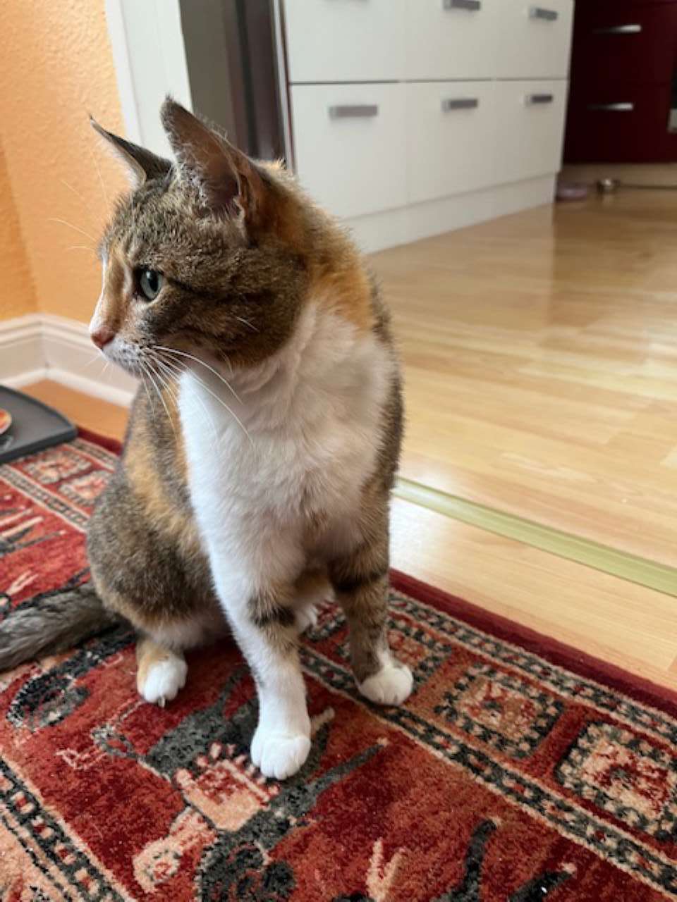 Memory hat sich schon bei uns sehr gut eingelebt. Sie fühlt sich sehr wohl bei uns. Unser Kater hat sie am Anfang nicht akzeptiert. Memory hat ihn ignoriert und keine Angst gehabt. Nach ein paar Tagen hat er sich ihr nähern und schnuppern wollen, aber Memory hat ihn nicht an sich rangelassen– immer noch. Aber jetzt nach einer Woche spielen sie fast miteinander und fressen ohne aufeinander aufzupassen, was der andere macht. Es läuft also sehr gut. Allerdings haben wir sie noch nicht alleine in der Wohnung gelassen. Wir sind sehr froh, dass wir Memory bei Euch geholt haben. Wir sind alle glücklich mit unserer Memory.