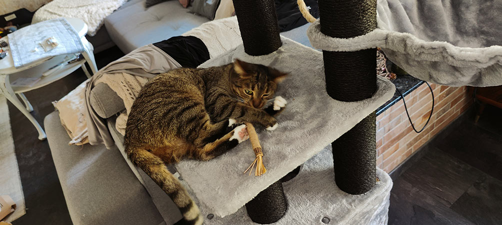 Auch das Schmusen ist natürlich großes Thema. Sie hat bereits gemerkt, dass nun regelmäßig jemand zum Streicheln und kuscheln da ist und fordert es nicht mehr ganz so energisch ein. Das wird langsam etwas weniger ruppig.