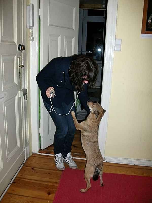 bin gut in Berlin angekommen  (na gut, ein ganz bisschen habe ich im Auto geweint, aber höchstens 5 Minuten). In meinem neuen Zuhause wurde ich schon sehnsüchtig erwartet. Ich habe mich dann auch von meiner besten Seite gezeigt: gar nicht gebellt, nur mit dem Schwanz gewedelt und meinen absolut bestechenden Blick aufgesetzt. Hat geklappt: alle sind verliebt!
